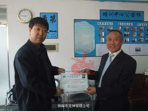 龍神總經(jīng)理彭小龍為老師頒發(fā)汽車鈑金與噴漆修復(fù)技術(shù)合格證書