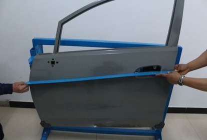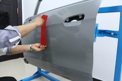 在40分鐘內(nèi),對(duì)雪佛蘭新賽歐左前門外板上的長(zhǎng)80mm,寬40mm,深10mm的條形凹陷(漆膜已破壞)進(jìn)行修復(fù),凹陷損傷穿過車身線。