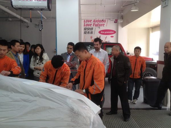 2013年特邀國外專家赴北京車爵士演示車縫泡膠條的使用 本司訊:2013年4月北京晴空萬里,龍神公司特邀英國專家一行五人,來到了北京車爵士進(jìn)行汽車噴涂遮蔽技術(shù)交流。首先公司一行了解車爵士的汽車噴涂情況及詢問了使用的遮蔽工具情況。隨后英國專家針對在汽車噴漆時(shí)難噴涂的車門縫隙、玻璃死角等地方的專業(yè)遮蔽工具的演示。車縫泡沫膠:用于車身所有縫隙的遮蔽,有效隔離及遮蔽漆霧噴入車縫里。 2013-04-08 12103