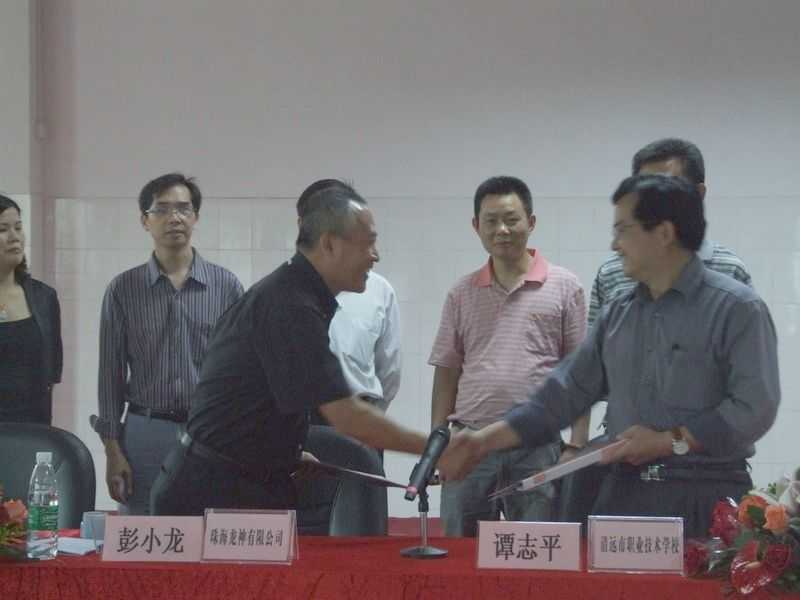2011年4月22日,我司在清遠(yuǎn)市職業(yè)技術(shù)學(xué)校舉行校企合作簽字儀式。在學(xué)校與合作企業(yè)的領(lǐng)導(dǎo)作了簡(jiǎn)短發(fā)言后,簡(jiǎn)單而隆重的簽字儀式正式開始。在儀式結(jié)束后有關(guān)人員參觀了學(xué)校內(nèi)的汽車教學(xué)實(shí)操間,實(shí)地了解學(xué)校教學(xué)狀況。